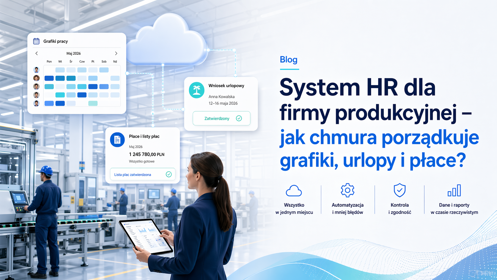 Dział HR w zakładzie produkcyjnym to nie biuro obsługi pracowniczej: to centrum operacyjne, które codziennie żongluje zmianami, rotacją, umowami na różnych warunkach i twardymi terminami rozliczeń płacowych. Choć arkusze kalkulacyjne i rozsiane po dyskach pliki przez lata okazywały się wystarczające, produkcja przyspiesza, a narzędzia nie nadążają. System HR dla firmy produkcyjnej zbudowany w modelu chmurowym zmienia tę sytuację od fundamentów.